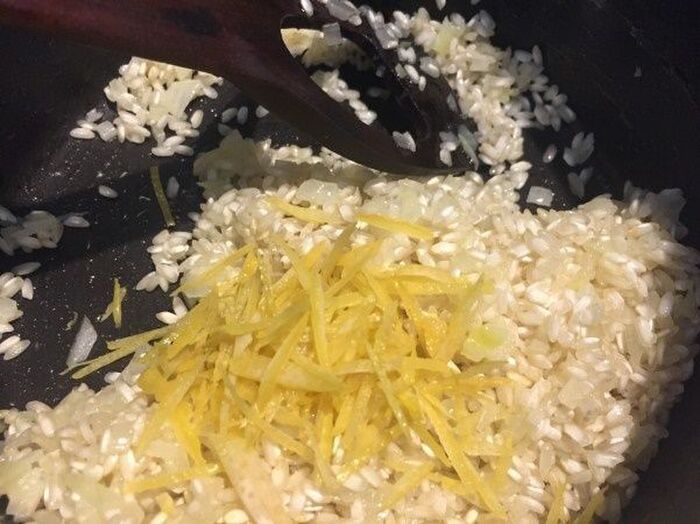 全体を米に絡ませてから レモンの皮と