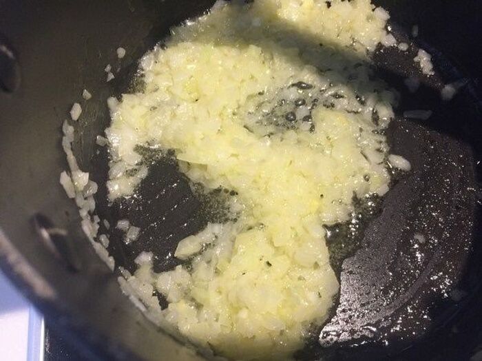 玉ねぎを透き通るまで炒める
