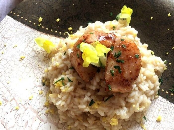 器にリゾットをふんわりと盛り付け