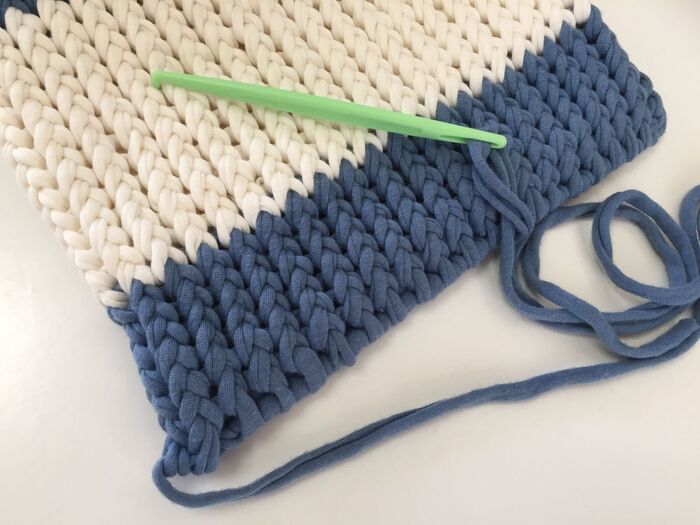 ここではブルー10段、オフホワイト13段、ブルー7段。
