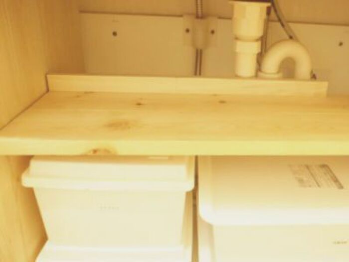 滑り落ち防止に端材の角材を付けました。.:♪*:・'(*⌒―⌒*)))