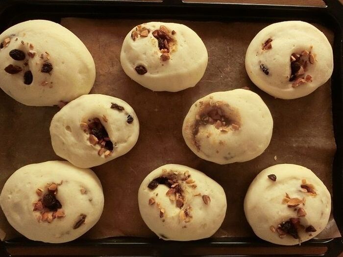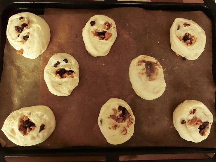 8等分にして天板に並べ、オーブン40℃で30分二次発酵させます。