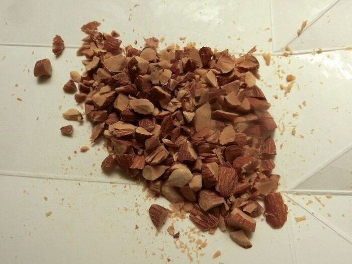 アーモンドはアルミホイルに包んでトースターで5分くらい焼き、冷ましてから細かく切ります。