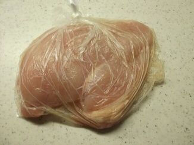 お湯に鶏肉を浸ける前に、室温に戻すことで、生煮えを防ぎます。