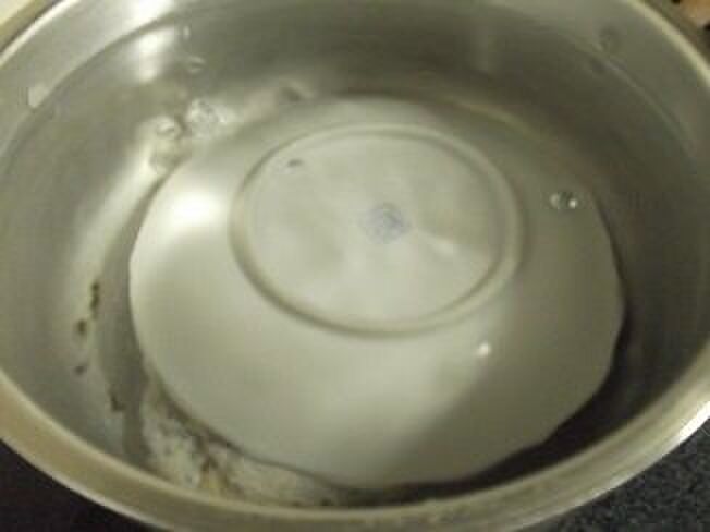 浮いてこないように、上からお皿を被せて鎮める。