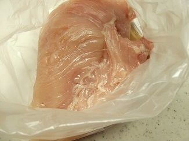 鶏むね肉を入れて軽くもみ