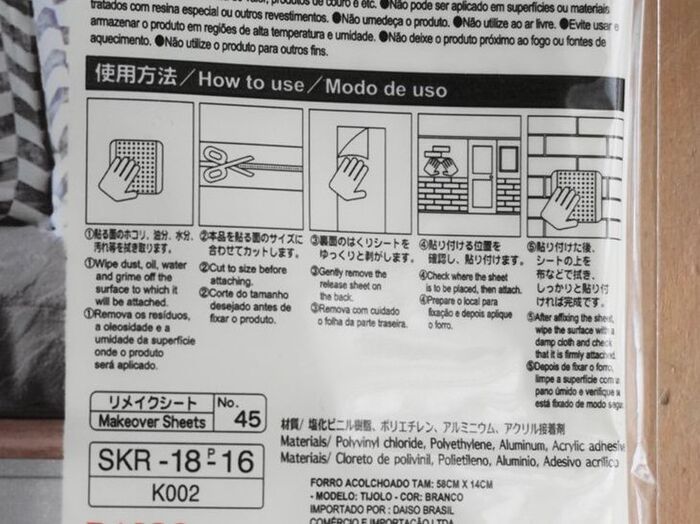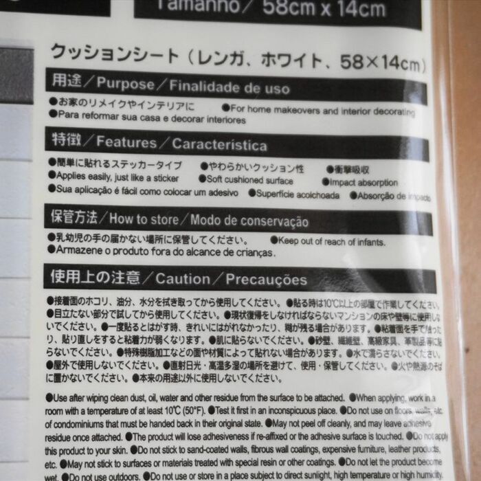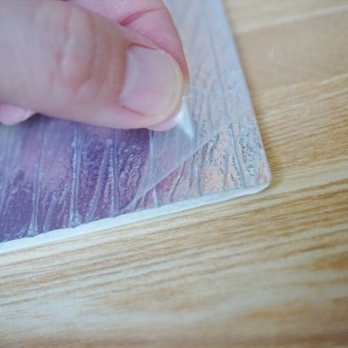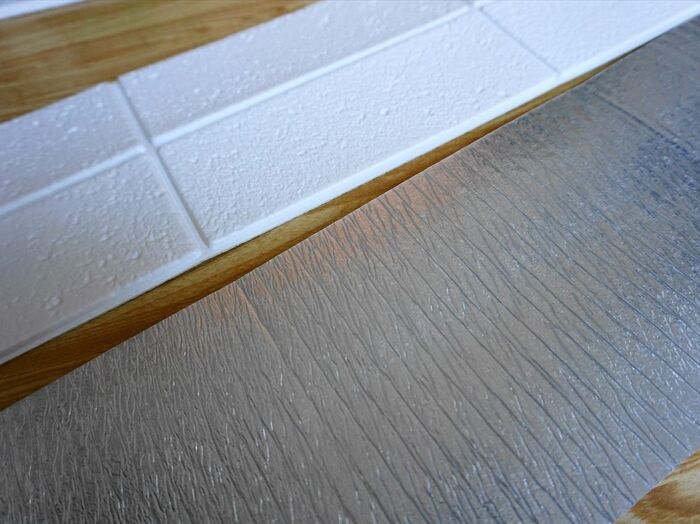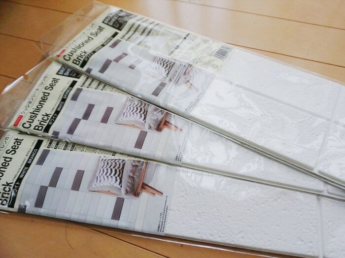 パッと見は本当に重いレンガ調ですが、持ってみると超軽量で柔らかいです。裏側がシールになっています。