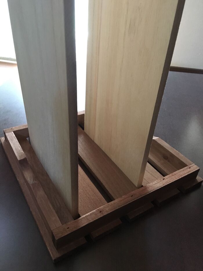 1番下の木箱の底には傷防止にフェルトを貼るといいですね。