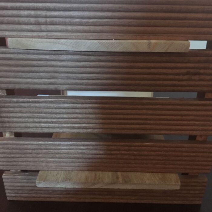 片側が終わったら もう1枚のウッドデッキパネルを下にし、同じように押し込んではめ込んだら完成です。