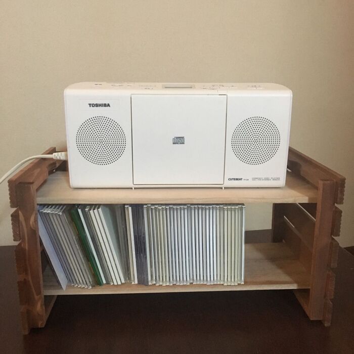 1番上と下の隙間を利用すると、CDやDVDが入るので、こんな使い方もできます。
