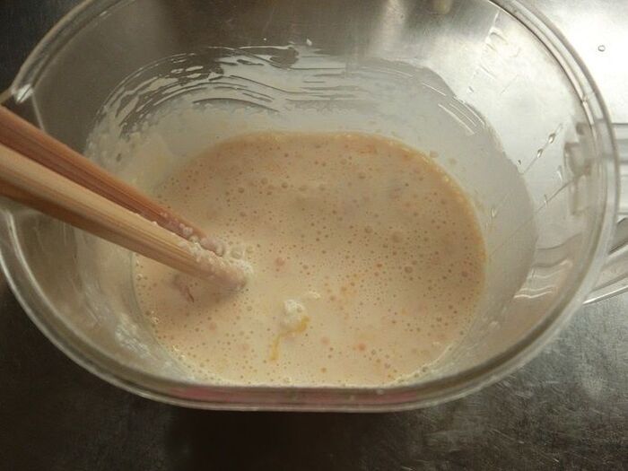 卵を溶きほぐし、★印の材料を混ぜ合わせておきます。