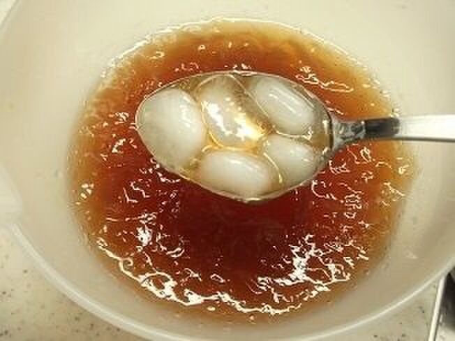 ボウルにきび砂糖を入れ、熱い紅茶を注ぐ。