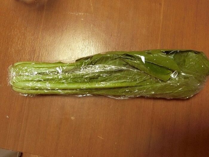 小松菜はラップに包んで電子レンジ600wで1分くらい加熱します。