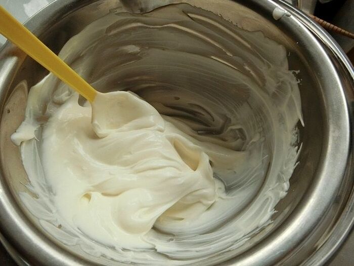「スプーンで1分★簡単ヨーグルト風クリーム」を作り、冷蔵庫で冷やしておきます。