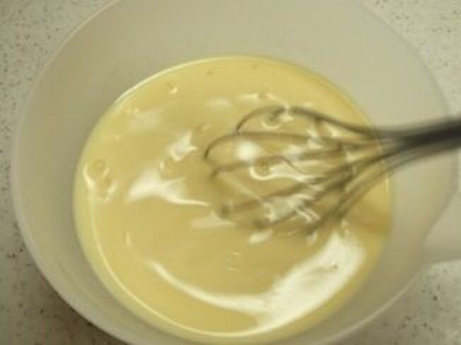 ボウルに(口付きが便利)、ヨーグルトを入れ、泡だて器で滑らかにしてからオレンジジュースを加えて更に混ぜる。
