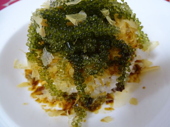 ぷちぷちがたまんない、海葡萄が温まる前に・・・・掻き込んで胃の中へ!!