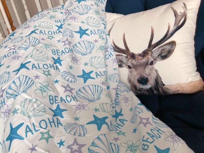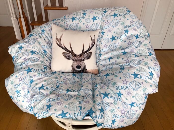 ソファーやチェアーに掛けて昼寝用に出しっぱなしでも可愛い柄ですね♪笑♡