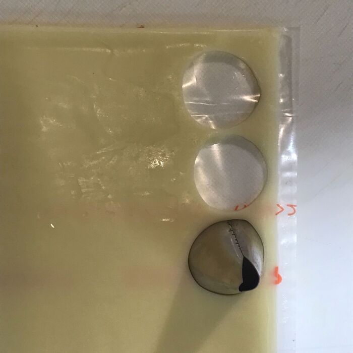体の部分は、ペットボトルのキャップにしました。楊枝で1/3に切り込み入れます。