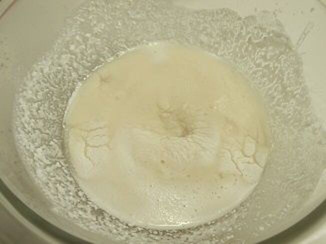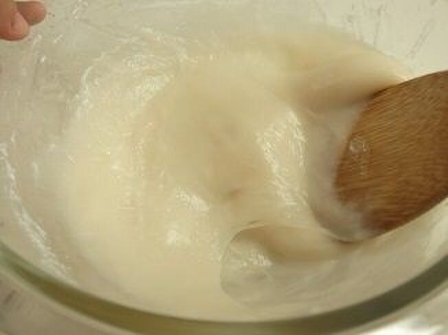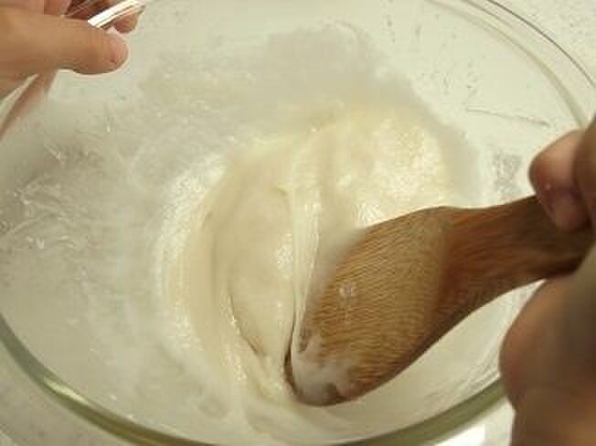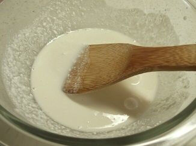 更に、ラップなしで600wのレンジで1分加熱して、木べらでよく混ぜる。