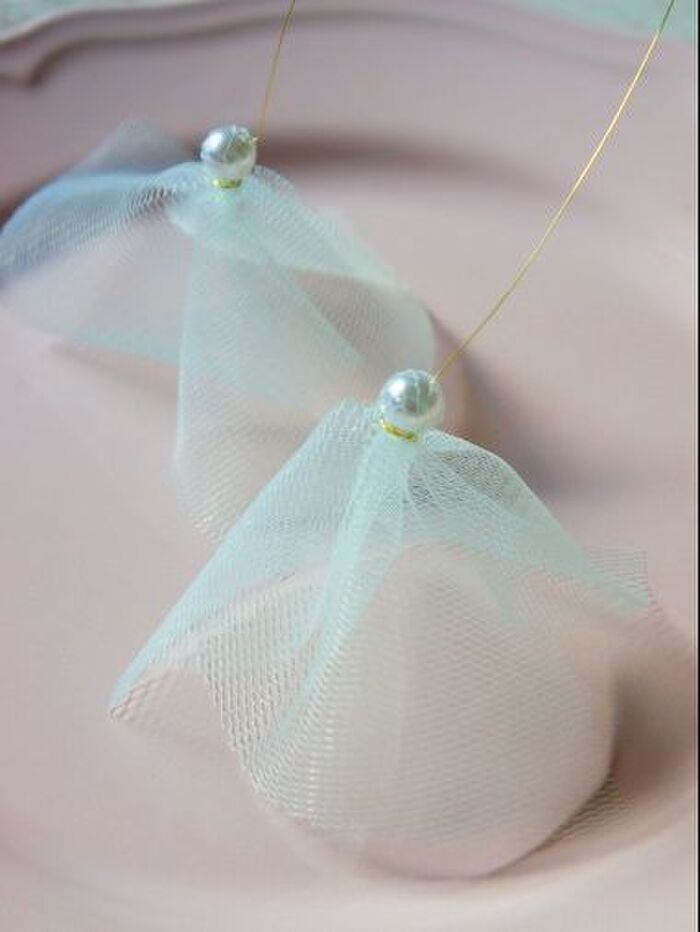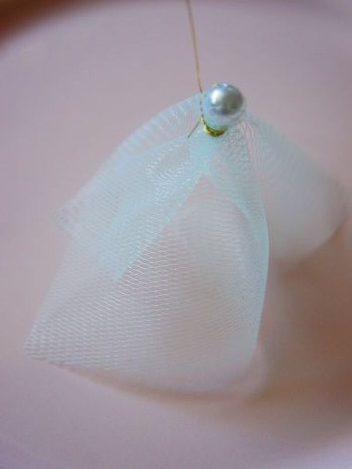 パールビーズを包むようにワイヤーでクルクル巻き留め、てるてる坊主のようなフォルムにしたらフェアリーパーツの出来上がり。