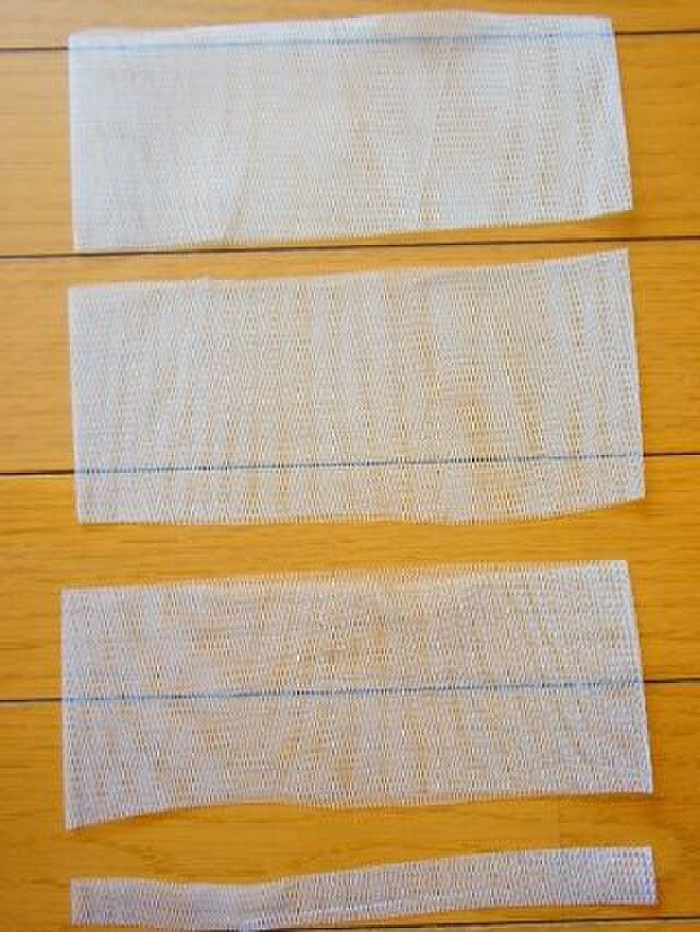 10㎝×60㎝にカットしたチュール布を2種類用意。