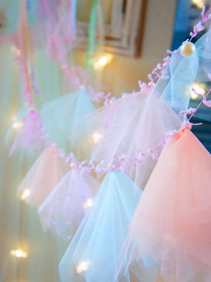 ファンシーなリースの上に淡い挿し色を添えて、夢見心地な演出をさらにプラスすることも。