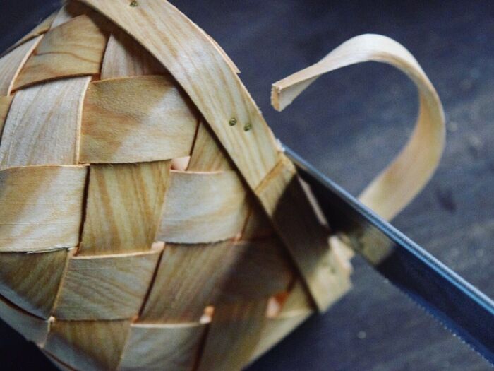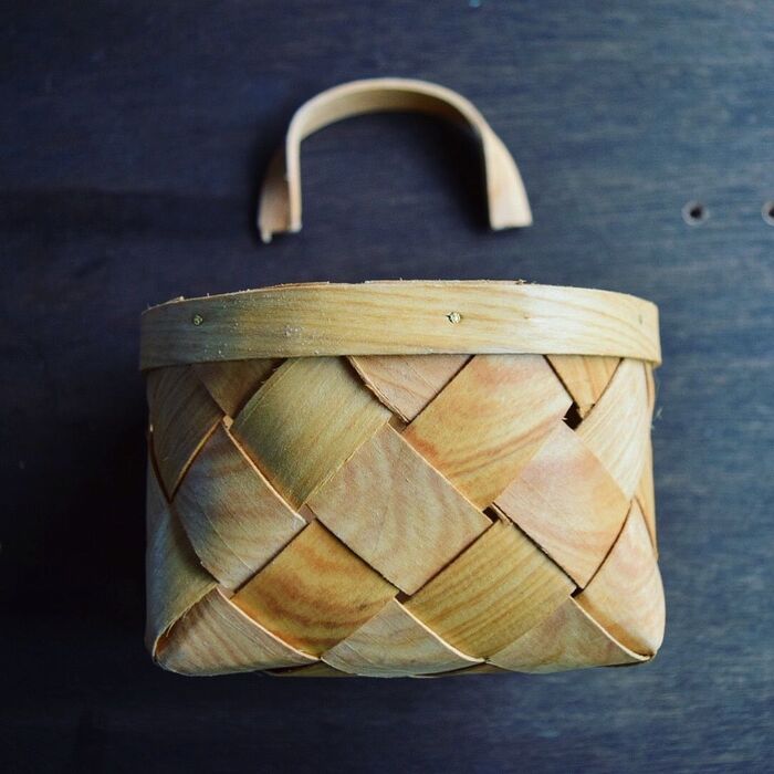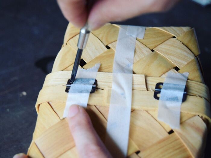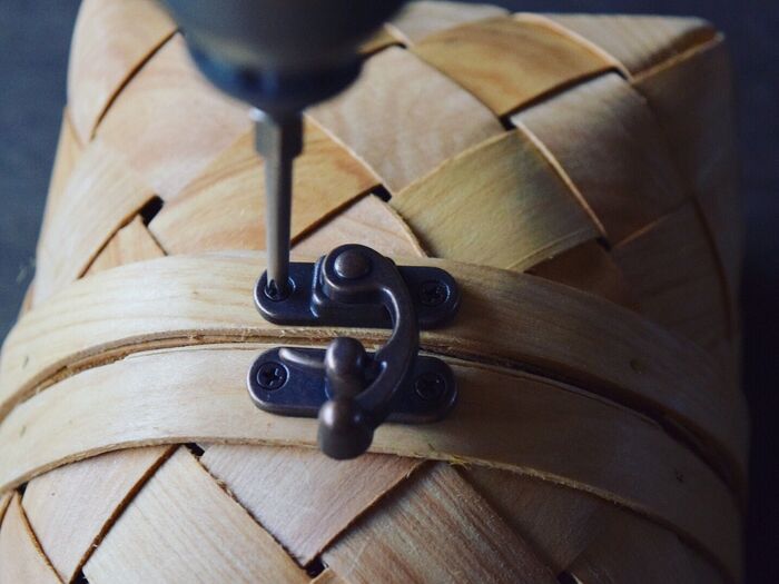 水杉バスケットの口をとめてある釘の部分とぶつからないように位置を決めましょう!