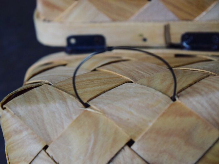 水杉バスケットの持ち手の部分を2個ともカットします。