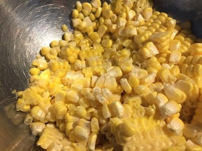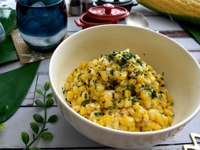 トウモロコシは半分に折ってから 折った断面を下に置き