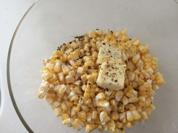 耐熱ボウルに入れバターと黒コショウをふりラップをして600Wのレンジで