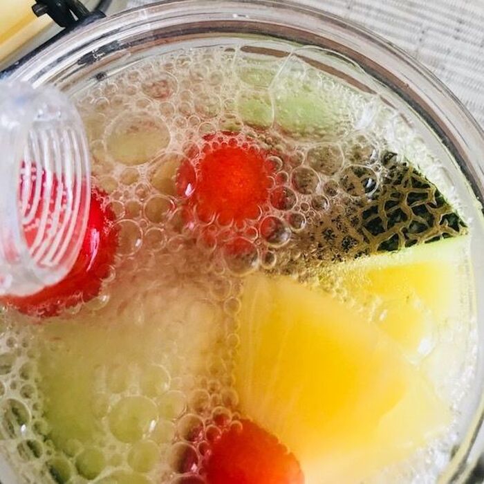 おいしい炭酸水は、強炭酸なのでしっかりフルーツに浸透します。