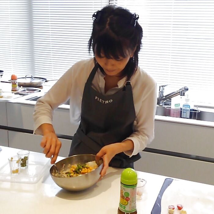 暮らしニスタスタッフさんからオフ会の流れ、企業のピエトロさんスタッフの紹介、出席した私達の自己紹介を終えて、青山金魚さんのクッキングスタート!!