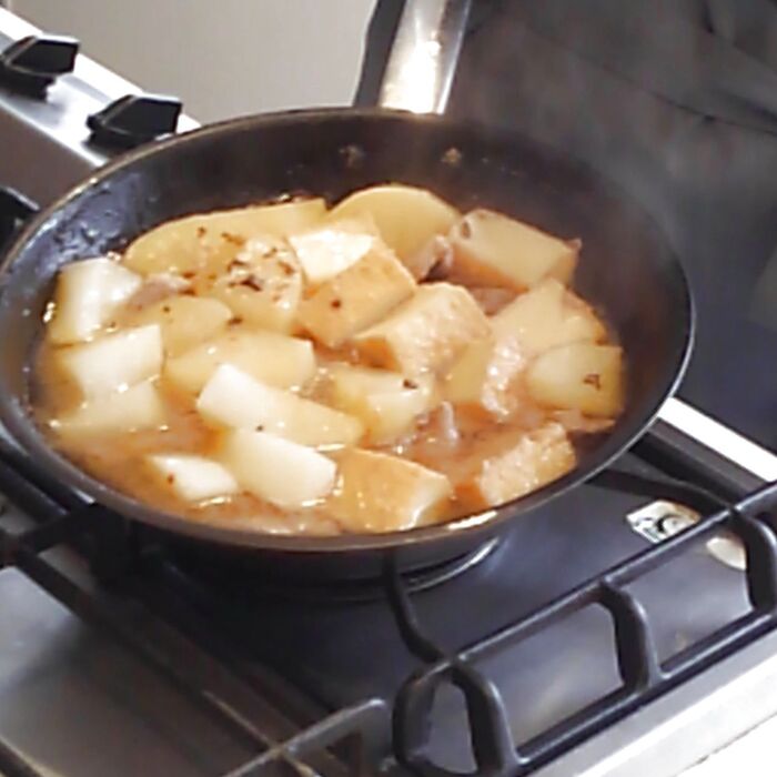 こちらのお写真は豚肉、大根、厚揚げをドレッシングを使い煮込みにしたものです。
