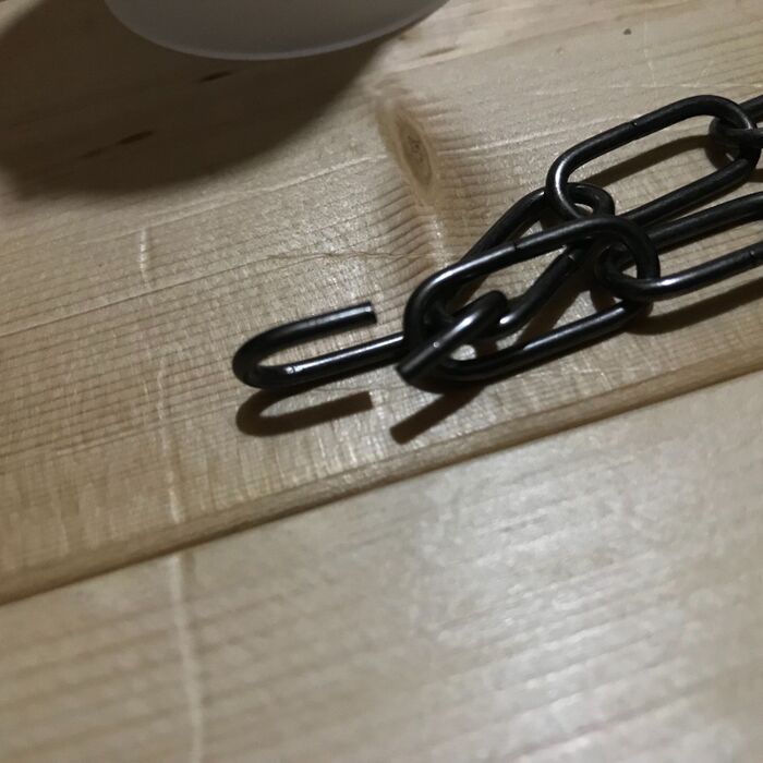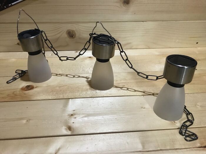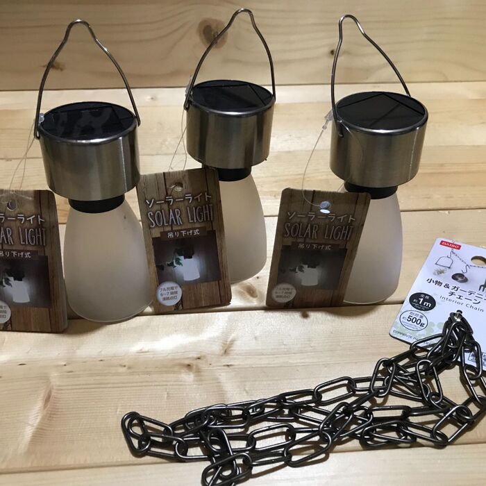 ソーラーは名前の通り吊り下げられる用にフック❓❔がついているので、チェーンの輪をペンチで開きます。