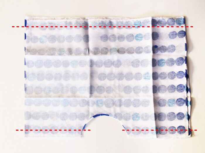 ウエスト部分と足部分を1.5センチほど折り、