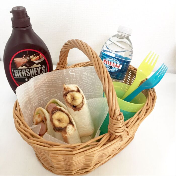 バナナとチョコレートシロップのサンドイッチは、子ども達にとって、とても作りやすいようです。ロールサンドにする場合には、あらかじめパンを麺棒で伸ばしてから具を乗せて巻き上げると綺麗に巻けますよ。