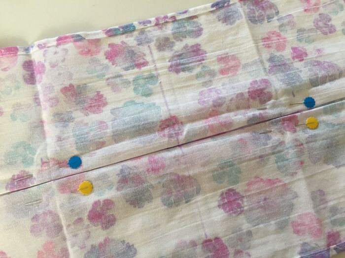 中心から左右10cmのところをミシンで縫います。
