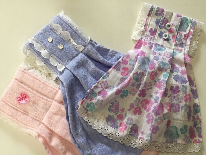 (無地のものは100均のタオルで作ったものです)