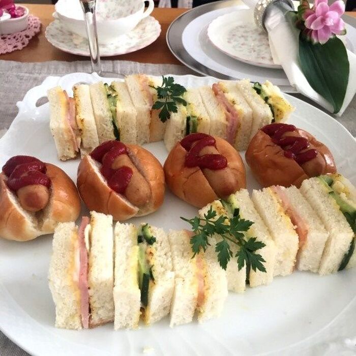 サンドイッチとミニホットドック。