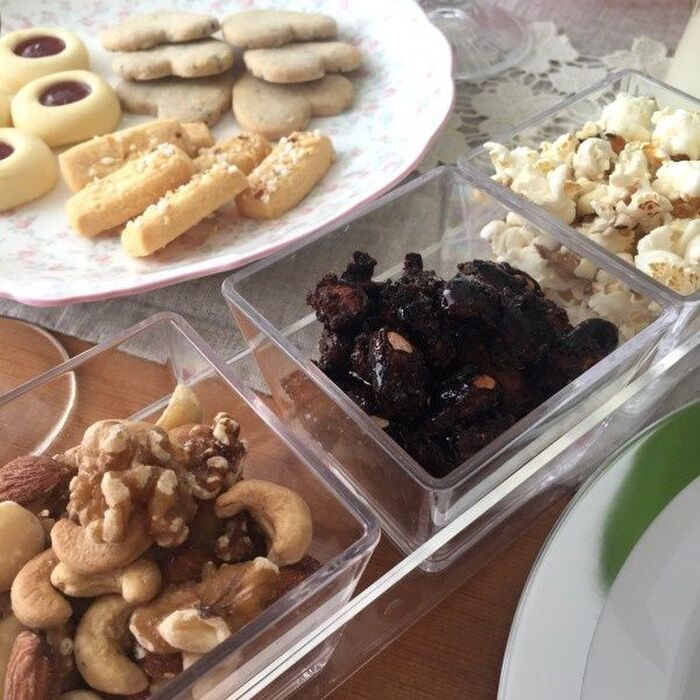 ミックスナッツ カカオプラリネ ポップコーン。