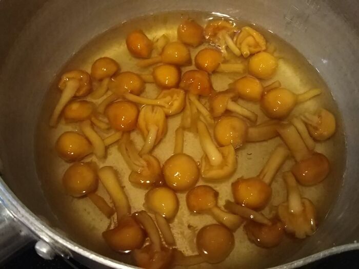 なめこと一緒に容器に入れ 冷蔵庫へ