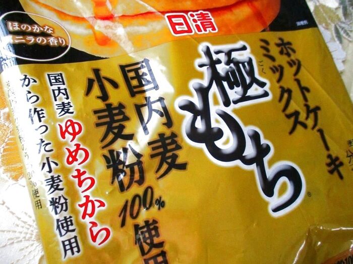 ミックス粉は、日清の極もちを使用しています、ふんわりともちっとした食感なんです、国内産のゆめちからから作った小麦粉使用とゆうことで、安心感・高級感もあり、使用頻度が多いミックス粉です。