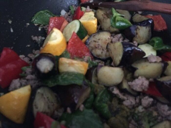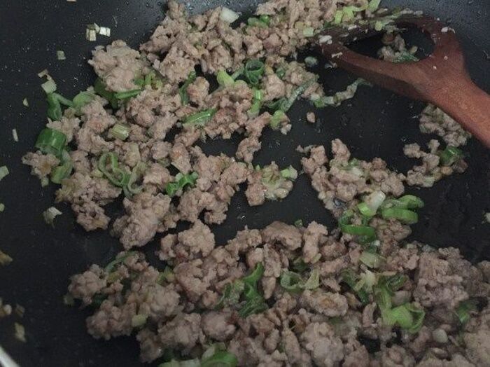 また ひき肉をしっかり炒めるのがおいしさのポイントです。