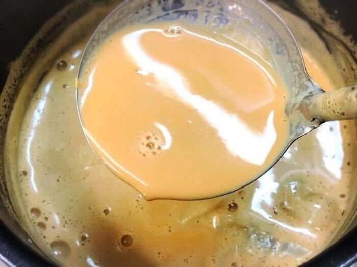 3.ティーバッグを絞って(ギューっと押して)から取り出し、練乳と1を加えて混ぜ溶かす。