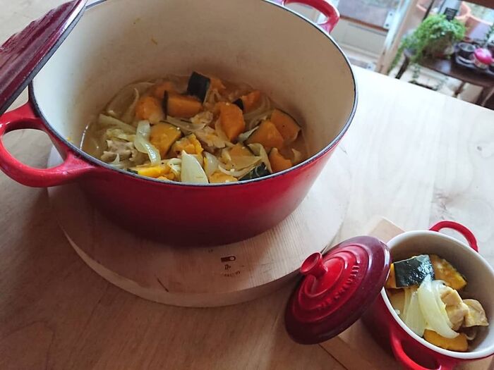 今回は鶏肉も入れましたが、カボチャととろ~り玉ねぎだけで、お野菜の一品としても十分美味しいです。