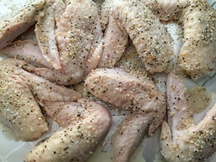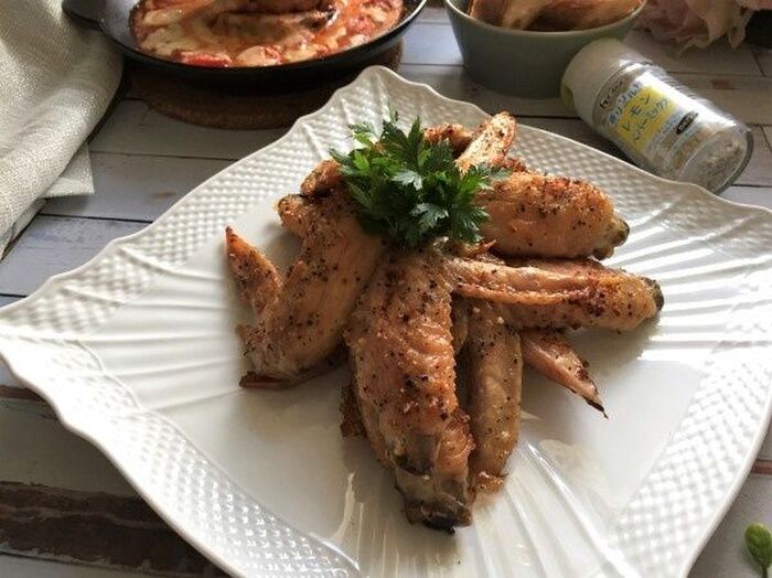 手羽先はフォークなどをさして所々に穴をあけ 白ワインをふりよく絡ませて
