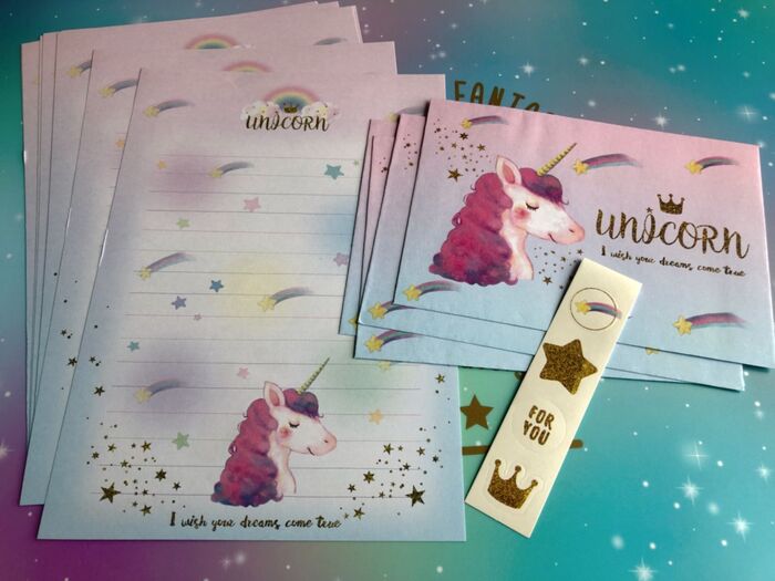 便せんは8枚、封筒は4枚にデザインの違うシールが4枚付いていますよ♪