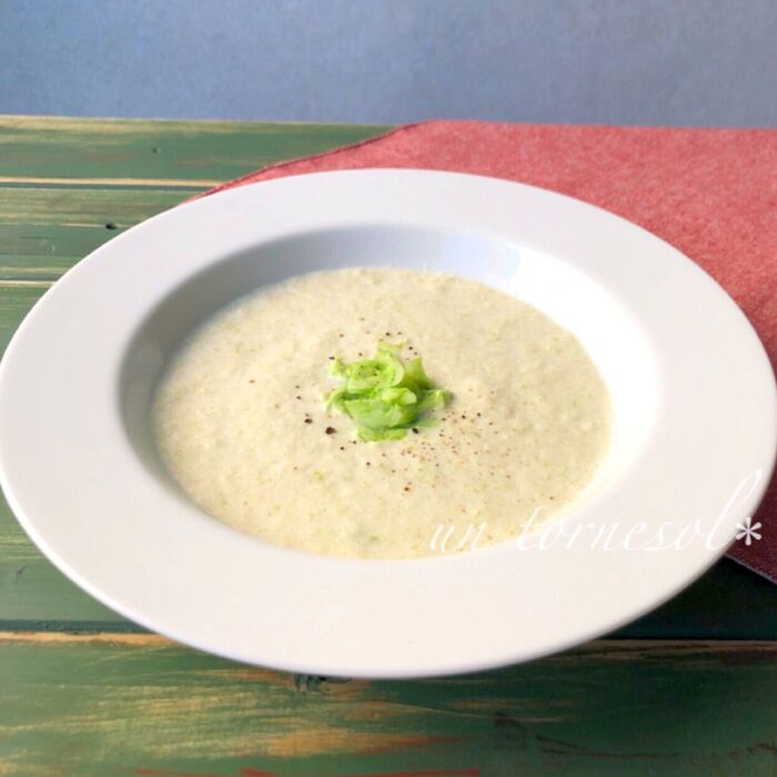 あら熱がとれたら、豆乳を入れてミキサー(ブレンダーなど)で滑らかになるまで撹拌し、塩とブラックペッパーで味を整えれば完成‼︎