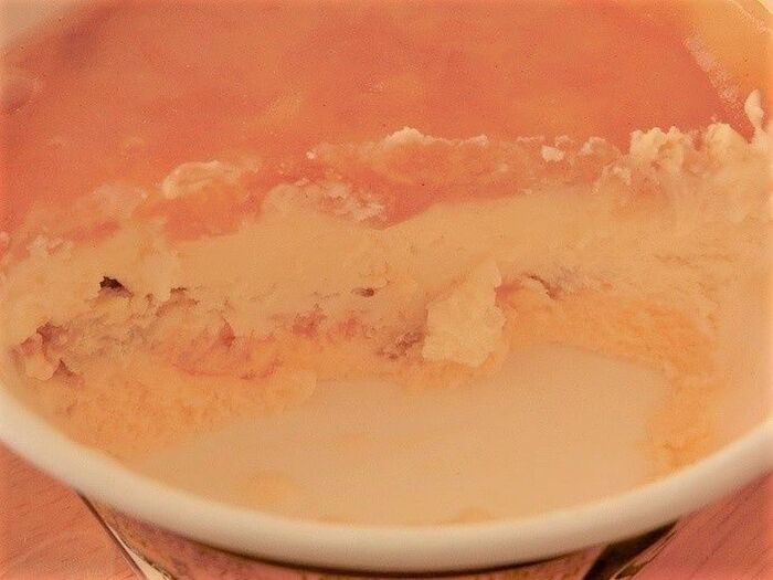 上から順にりんごの果肉入りソース、ホイップクリーム風アイス、バタークッキー、カスタード風味アイスとなっています。