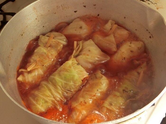 出来るだけ小さめのお鍋にロールキャベツを立てて入れ、きっちり入るようにするといいです。